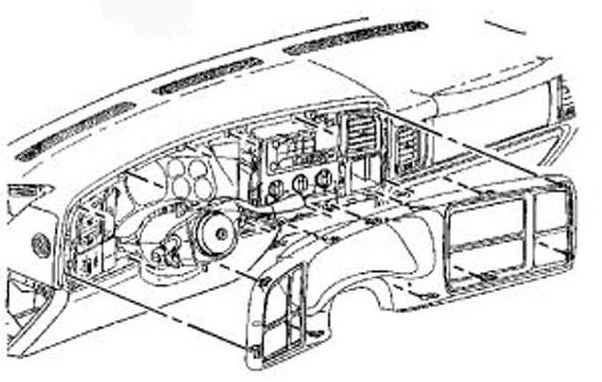 4. Pull gently rearward on the corners of the bezel from the instrument panel