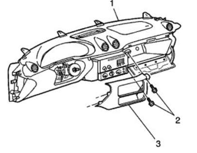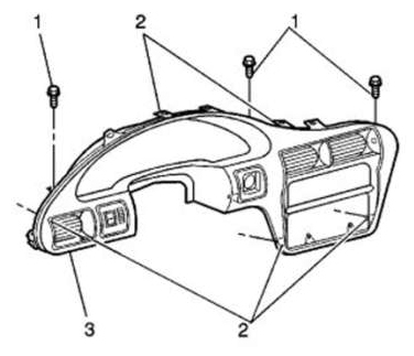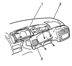 8. Remove the I/P cluster trim panel (3). Pull rearward in order to disengage