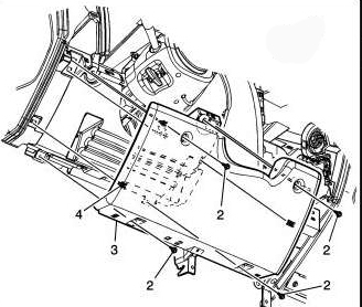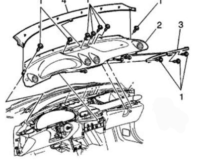 4. Remove the I/P upper trim panel (4) by lifting upward to release the