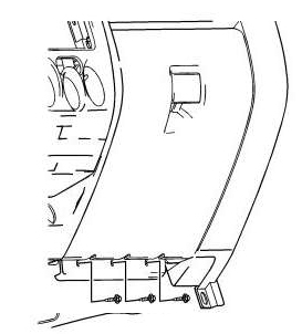 6. Remove left side knee bolster. Remove 3 screws holding knee bolster to instrument panel