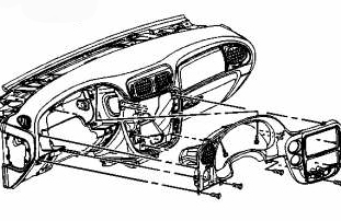 Remove the 6 screws retaining the bezel to the instrument panel (Chevrolet).