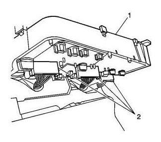 2. Remove the grille (2) from the instrument panel (I/P) upper trim pad (1).